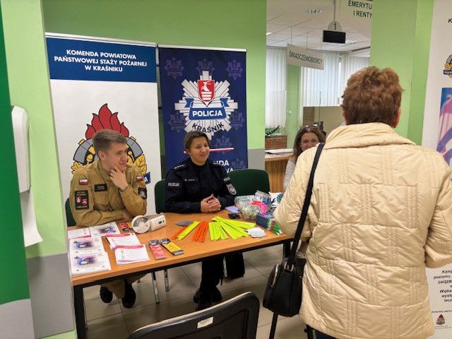 We wtorek 28 października 2025 r. w Inspektoracie Zakładu Ubezpieczeń Społecznych w Kraśniku odbyły się Dni Seniora pod hasłem Świadome decyzje bezpieczny senior. W wydarzeniu uczestniczyli przedstawiciele lokalnych instytucji, w tym Komenda Powiatowa Policji w Kraśniku oraz Państwowa Straż Pożarna.