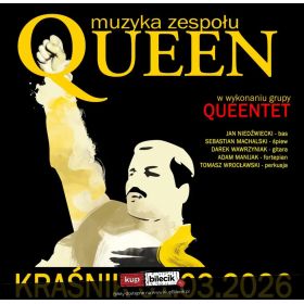 bilety: 1 marca 2026 roku w Centrum Kultury i Promocji w Kraśniku wystąpi grupa QUEENTET, która zaprezentuje program wypełniony nieśmiertelnymi utworami zespołu QUEEN. Skład 5-osobowej grupy Queentet tworzą muzycy, który od 15 lat lat wykonują piosenki Queen z towarzyszeniem orkiestry symfonicznej. To gwarancja rozrywki na najwyższym poziomie przy kompozycjach, które na stałe weszły do kanonu rocka. Zapraszamy w niedzielę 1 marca 2026 do CKiP przy al.Niepodległości 44. Początek koncertu o 18:00 Sebastian Machalski (wokal) w tym zestawieniu muzycy wystąpili pod koniec 2018 roku na premierze filmu "Bohemian Rhapsody" a teraz ruszają w Polskę z koncertami, by również w średnich i mniejszych miastach przypomnieć fanom wspaniały dorobek grupy Queen. Queentet artyści: Sebastian Machalski, Jan Niedźwiecki, Darek Wawrzyniak, Adam Manijak, Tomasz WrocławskiSkład 5-osobowej grupy Queentet tworzą muzycy, który od 10 lat lat wykonują piosenki Queen z towarzyszeniem orkiestry symfonicznej. To gwarancja rozrywki na najwyższym poziomie przy kompozycjach, które na stałe weszły do kanonu rocka. Twórcy i muzycy projektu Queen Symfonicznie, którzy od lat przemierzają kraj i zagranicę z repertuarem Freddiego, Briana, Johna i Rogera, postanowili zaprezentować fanom nowe wcielenie - 5-osobową grupę QUEENTET, która zaprezentuje na żywo klasyczne już utwory takie jak "Bohemian Rhapsody", "We Will Rock You", "We Are The Champions" "I Want It All", "Anoher One Bites The Dust", "Radio Gaga", "Somebody To Love", "Keep Yourself Alive" w dynamicznych rockowych wersjach. Bilety do nabycia na: KupBilecik.pl |